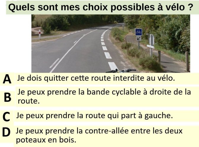 Accueil > ERVé > Apprendre la rue et la route > Le code la route et les cyclistes > Questions sur le code de la route > Questions de situations > Situations : question 2025-N5