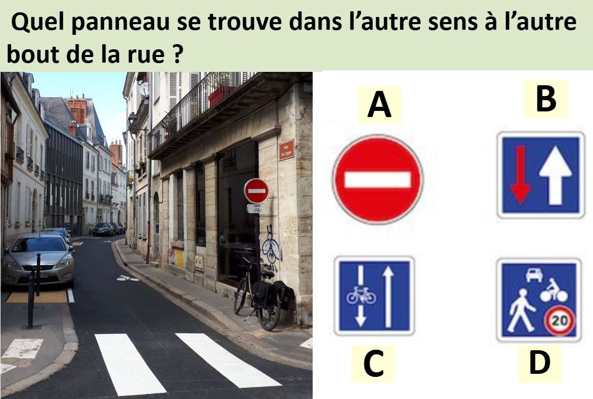 A : Si c’était un panneau sens interdit, il n’y aurait pas de voiture garée et les panneaux utilisés seraient des interdictions à tous les véhicules (panneau rond bordé de rouge sans aucun symbole).