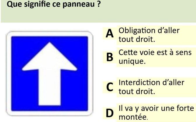 A : Si c’était une obligation, le panneau serait rond sur fond bleu.