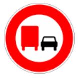 Interdiction aux véhicules automobiles, véhicules articulés, trains doubles ou ensemble de véhicules, affectés au transport de marchandises dont le poids total autorisé en charge ou le poids total roulant autorisé est supérieur à 3.5 tonnes de dépasser tous les véhicules à moteur autres que ceux à deux roues sans side-car.