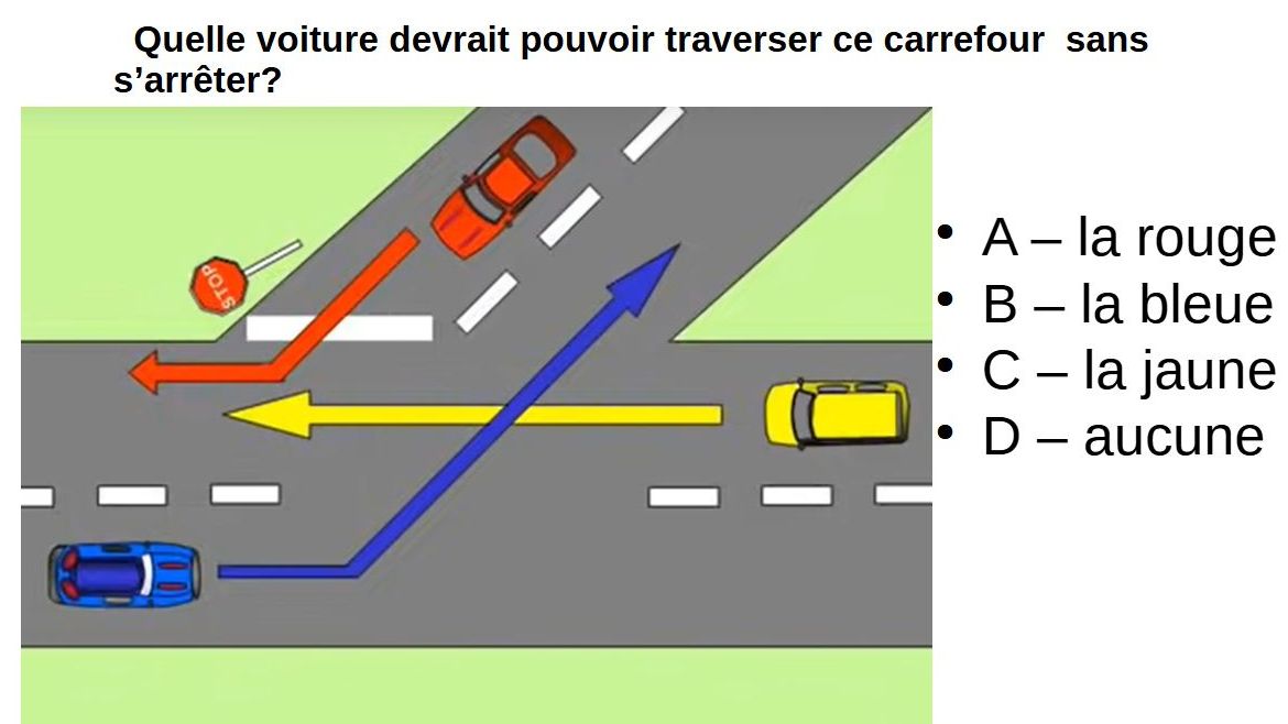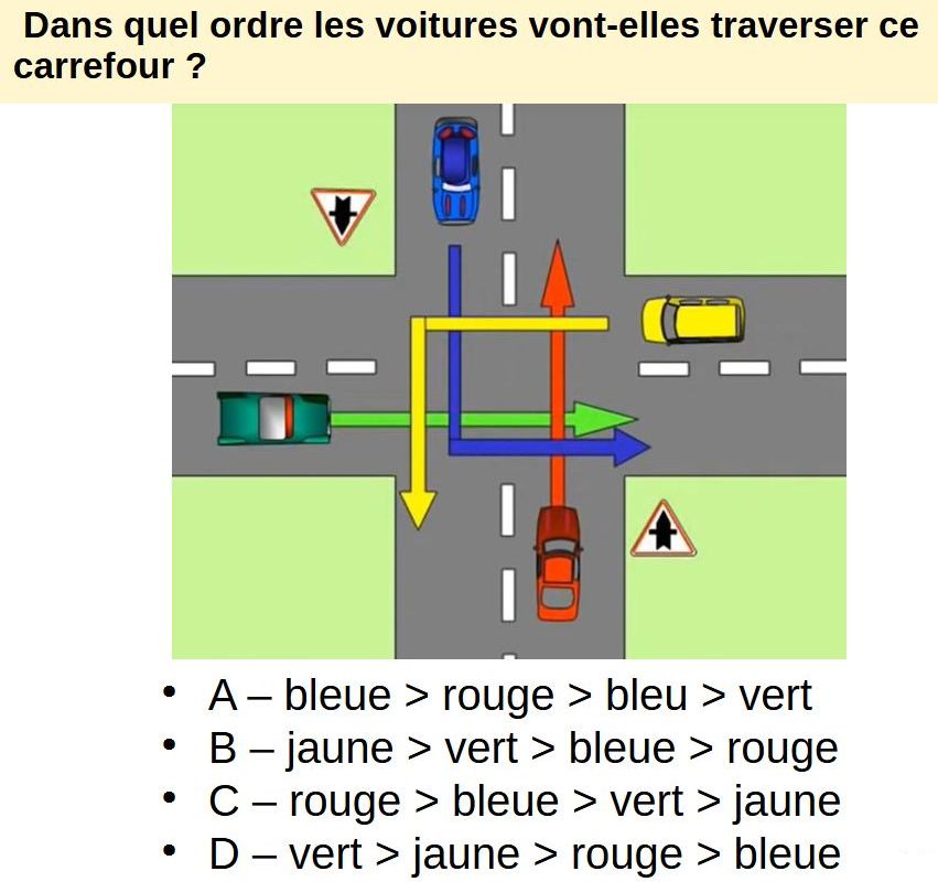 Cet article contient (102 images) de type QCM QCM Questionnaire à Choix Multiple à propos des priorités aux carrefours routiers. Attention : les bonnes réponses ne sont pas affichées ici...