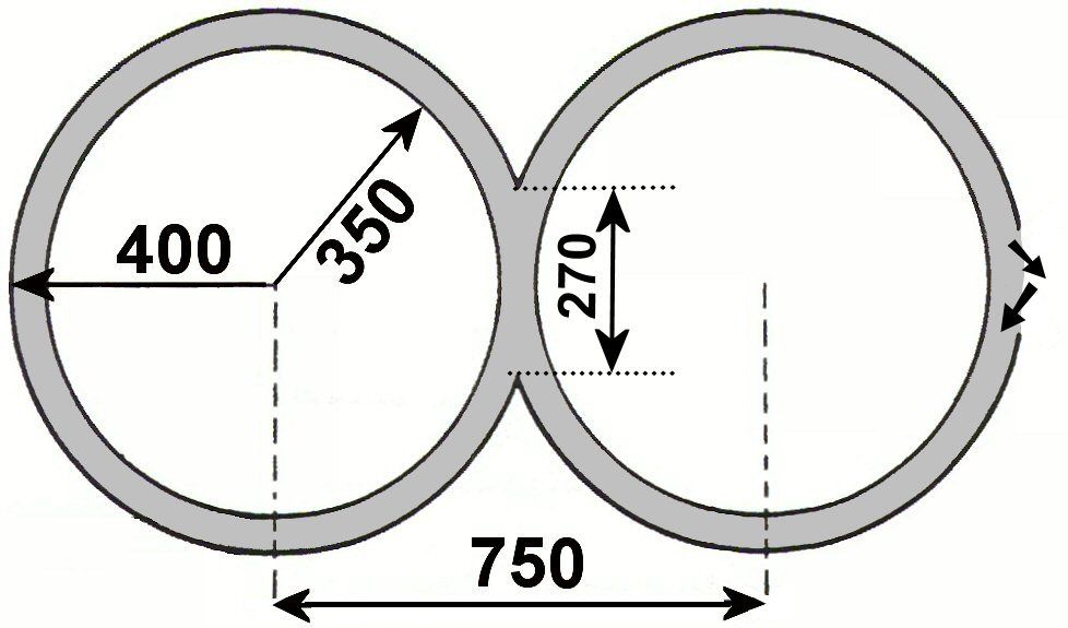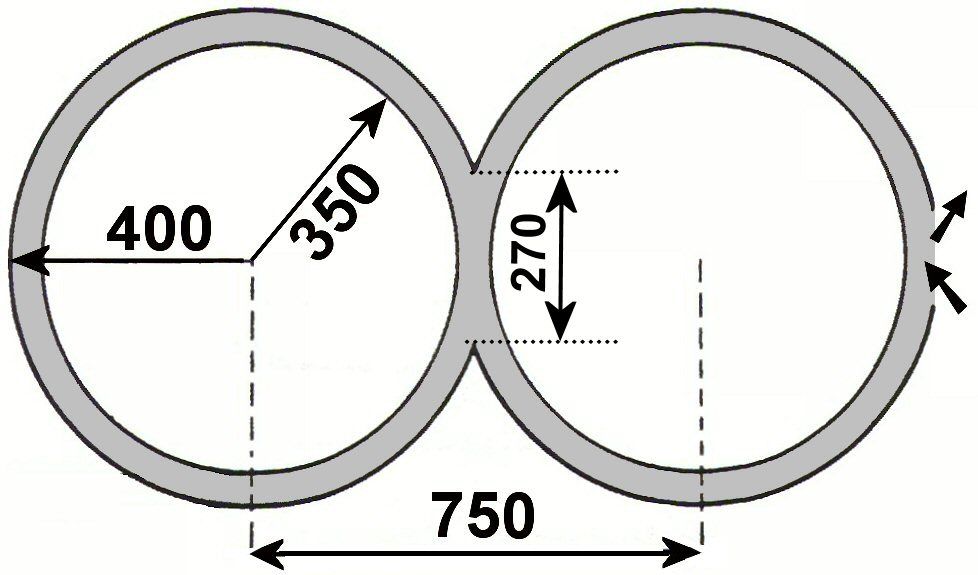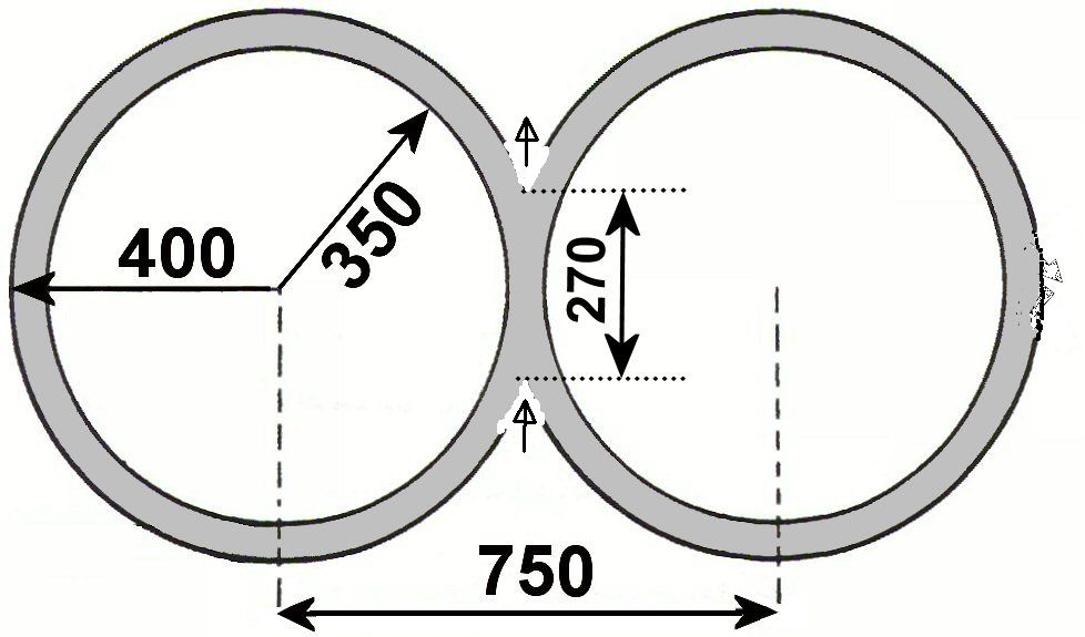 - R1=R2=3,50 m