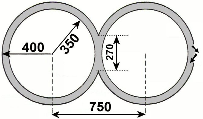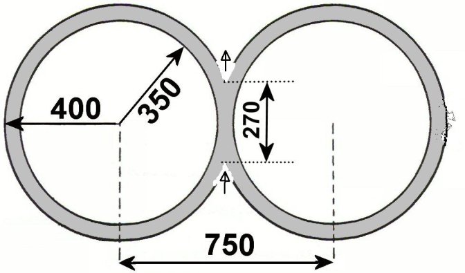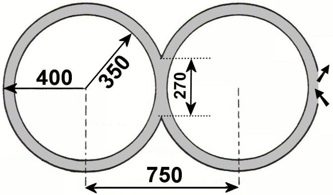 Les deux cercles peuvent avoir des diamètres différents (minimum 3m intérieur, maximum : 5m intérieur). Les cercles ne sont pas tracés.