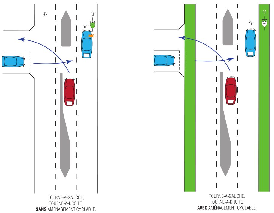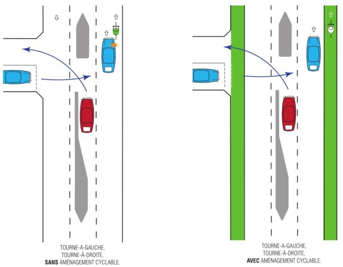 Le "tourne à gauche" à apprendre dès le plus jeune âge est celui qui est direct et sans sas cycliste tant que le sas n’est pas généralisé. Ni le cas du sas cycliste ni le tourne à gauche indirect (voir en fin de page une illustration pour ceux qui ne connaissent pas) ni le tourne à gauche de piste cyclable ne sont abordés ici.