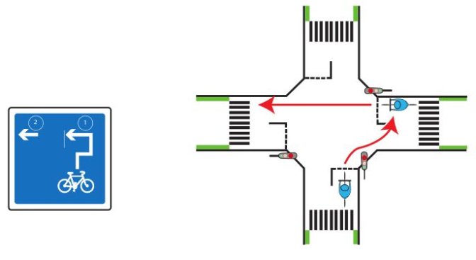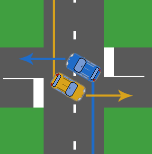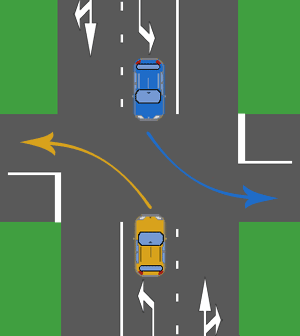 [1] Si les conducteurs communiquent correctement, le franchissement à l’indonésienne reste possible mais il les véhicules venant en face et allant tout droit peuvent être cachés. NON RECOMMANDÉ